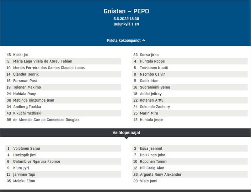 From the visiting side I would accept only Kotanen and Sukunda to be worth starters at Gnistan, most would not even make the bench.