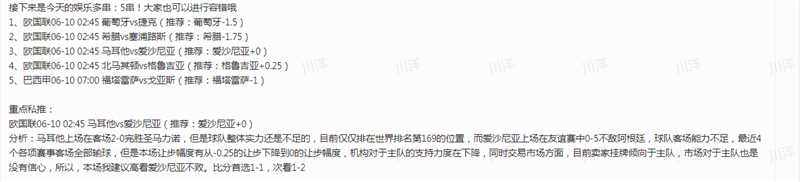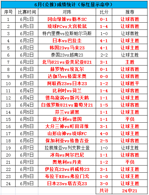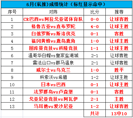 昨天再度又是私推和公推双收的一天啊,只是遗憾昨天的5串1博单差1场就能命中,4场比赛全中之后,被早上的巴甲绝平。目前整体6月公推是24中21,命中率87.5%,重点私推13场命中10场,命中率76.9%。