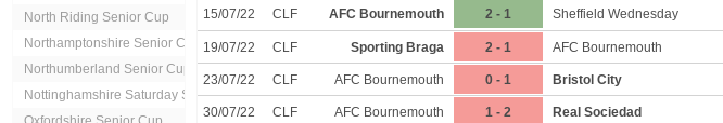 In the preseason games Bournemouth failed to impress as you see from the results below: