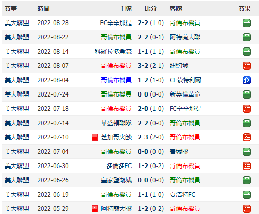哥倫布上場主場2:2平局