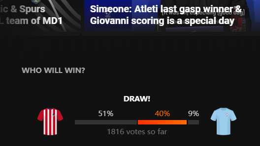 马竞上轮联赛1-1战平皇家社会,目前排名西甲积分榜第7。莫拉塔在比赛伊始第5分钟就打进一球,第32分钟再进一球被判无效,最后晚节不保没能守住领先优势,第55分钟皇家社会新引进的萨迪克扳平,双方各得1分。