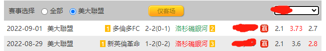 但洛杉磯銀河作客東岸球隊時都是開出2.10主勝