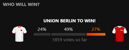 两支球队都参加了周四的欧战比赛,科隆是在欧会杯客场作战前往法国尼斯,并以1比1踢平对手、红了指数;而柏林联合是在主场征战欧联杯,小爆冷门0比1负于比利时圣吉罗斯(黑了指数)。