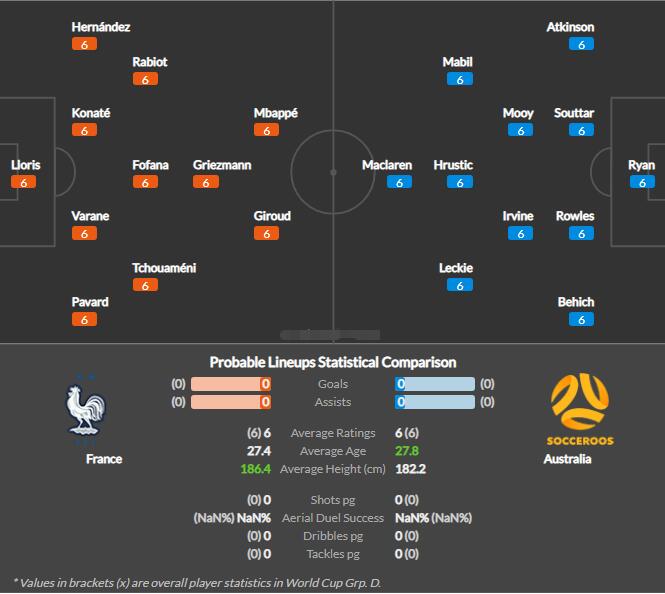 卫冕冠军魔咒是否会再度出现?!本届法国队在去年本以为将是最强的一节,毕竟前场本泽马+姆巴佩+博格巴+坎特+瓦拉内组合令其非常期待,但是随着世界杯的临近,包括博格巴、坎特、本泽马、恩昆库等人因伤退出,让目前这支法国队热度下滑,不过其实就目前这支法国中场拥有皇马双星琼阿梅尼+卡马文加组合,虽然其国家队经验上有所不足,但个人觉得其实力还是远在澳大利亚之上,而在本届世预赛中,法国八场小组赛取得5胜3平,以小组第一顺利晋级世界杯正赛,不过在随后的欧国联比赛中,法国表现并不理想。