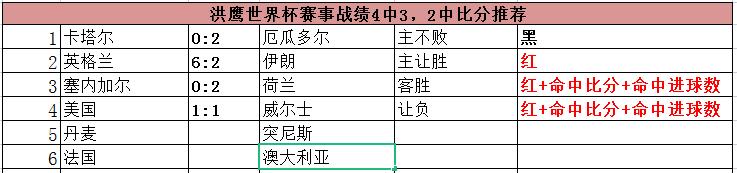 世界杯第三比赛日即将打响!拥有夺冠热门之一的阿根廷和法国即将登场,在昨日的三场推荐中,个人全部实现命中!其中还命中了塞内加尔0-2荷兰+美国1-1威尔士的比分和进球数结果!。本人在本届世界杯上也会做出不少于50场的赛事推荐分享给到大家,截止至11.22日,个人世界杯【4中3】,国际赛战绩【16中13】,世预赛战绩【23中16】,奥运男足战绩【10中7】,从战绩上来看个人对于国家队赛事还是颇有心得!