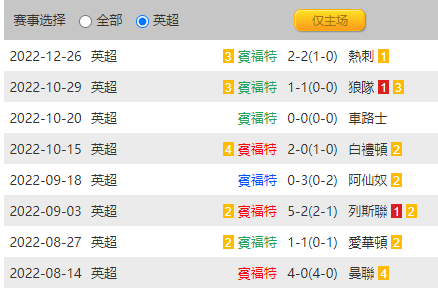 一波英超3勝4平1負