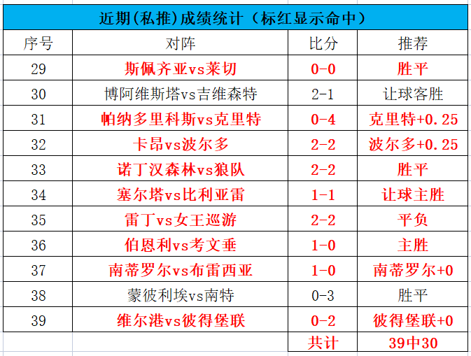 欢迎订购私域!川洋陪您过春节!私域近9中8!昨日公推命中,私推也是命中,但是埃因青年和芬洛的比赛延期,我们等等后续处理。今天我们继续战斗!公推近83中56,命中率67.5%,私推近39中30,命中率76.9%。PS:订阅川洋私享服务的朋友可以免费查看川洋的每一篇文章(包含任九),更有私享比赛精彩推荐,指数变动提醒,并且还能与我无限畅聊哦!川洋与您携手并进。