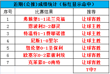 兄弟们,春节回归,昨日公推的5场比赛全部命中,状态不错,私推的比赛2中1,利物浦被布莱顿加时决赛,没有能达到全部命中,还是比较遗憾,今天我们继续战斗。PS:订阅川洋私享服务的朋友可以免费查看川洋的每一篇文章(包含任九),更有私享比赛精彩推荐,指数变动提醒,并且还能与我无限畅聊哦!川洋与您携手并进。