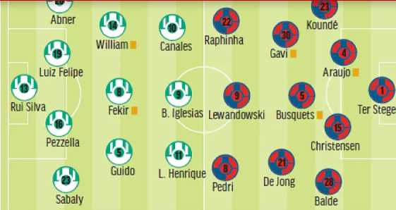 The teams have not met this season yet, but in the Supercopa in Saudi Arabia Betis managed to hold on to a 2-2 draw only to lose after penalties. The goals were scored by - yes, you guessed it - Fekir and Lewandowski on normal time.