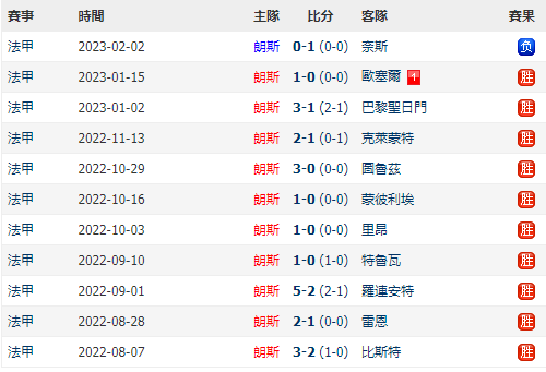 朗斯排名第2