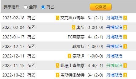 登博思是荷乙作客最差的球隊