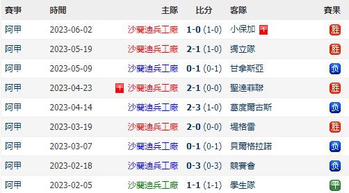 萨兰迪兵工厂今季總積分17分
