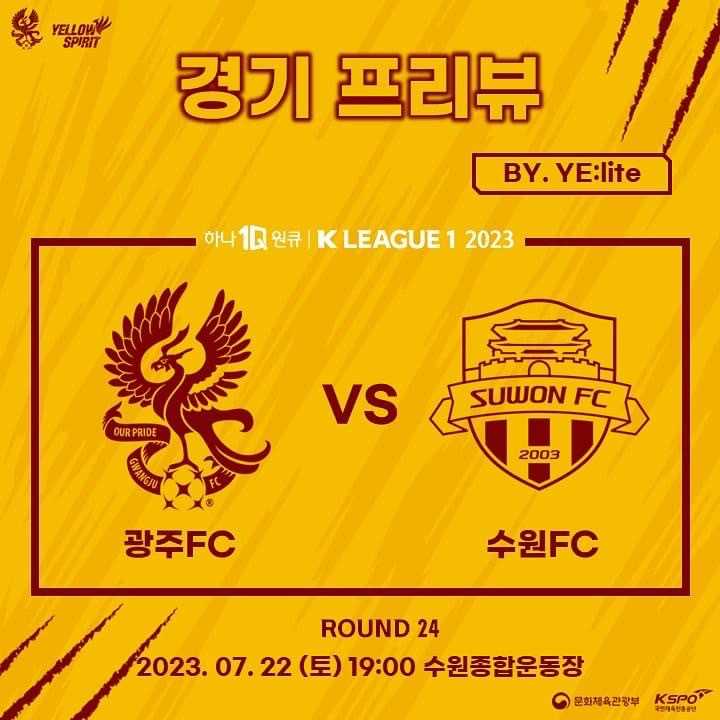 水原FC在本赛季开始至今的状态处于低迷之中,在23轮K联赛过后只取得5胜5平13负的糟糕战目前排名联赛第十位,相比于上个赛季来说下滑许多。球队本赛季攻防两端的表现都是非常软弱,其中防守更是最为糟糕的问题。球队上场联赛在客场以0-1的比分惜败于全北现代手中,球队已经是连续7场赛事没有取得过胜利,士气处于低谷期。光州FC作为本赛季的联赛的升班马,上一场主场对阵大邱FC双方战至1-1平手,球队已经是连续3场赛事都是与对手战平,近期赢球能力不足。不过球队目前在23轮赛事过后取得8胜7平8负,排名联赛第六位,应该说对于一支升班马来说这样的成绩还是十分值得肯定的。