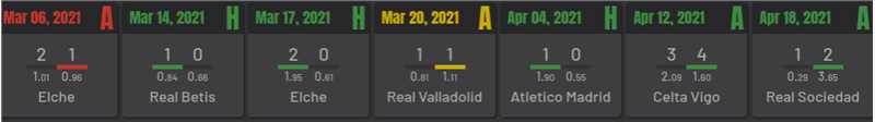 他们确实在主场输给了韦斯卡,并且创造了很少的进球机会,在一场非常无聊的比赛中以接近0的机会赢下了伊巴尔,而且在过去几周主场1-5输给比利亚雷亚尔的比赛中,他们的表现很好。还需要注意的是,伊巴尔在接下来的比赛中以0 - 5输给了马德里竞技,并在那场比赛中取得了0 -0的成绩。