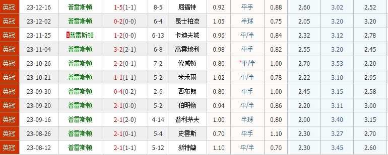 整個賽季普雷斯顿主場連+0.5都沒有開出過