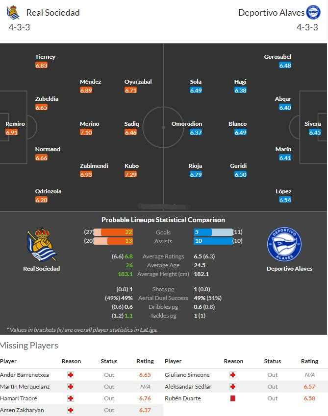 西甲重燃战火,本场由目前第6的皇家社会对阵第16的阿拉维斯,皇家社会本赛季志在欧战席位,目前球队暂列积分榜第6,距离第五的毕巴有4分差距,此役主场对阵保级球队,球队具备十足的取胜战意。而从近况来看,球队近期胜率下滑,近两轮连续与贝蒂斯和加的斯打出0-0的赛果,不过目前球队人员上迎来利好,边后卫特拉奥雷和中场苏比门迪以及前场的巴雷内切亚目前都伤势恢复可以出战,此外队内部分国脚包括久保健英等人也将在本场比赛之后才各自前往国家队报道。
