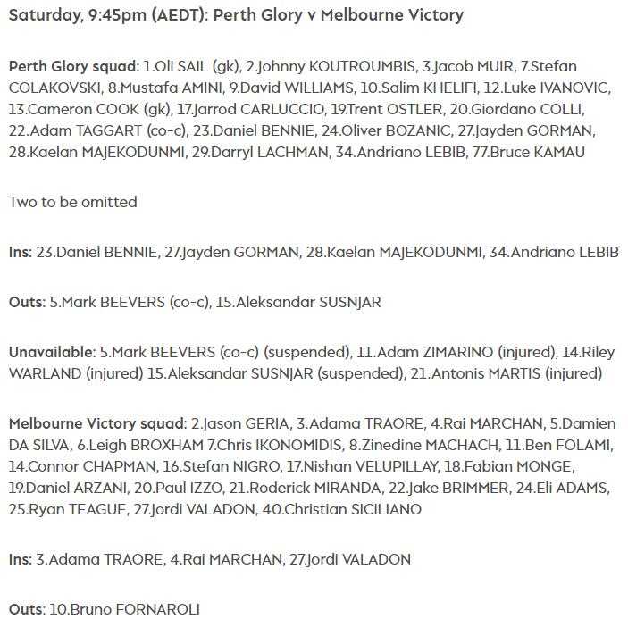 珀斯光荣(11) VS 墨尔本胜利(2)