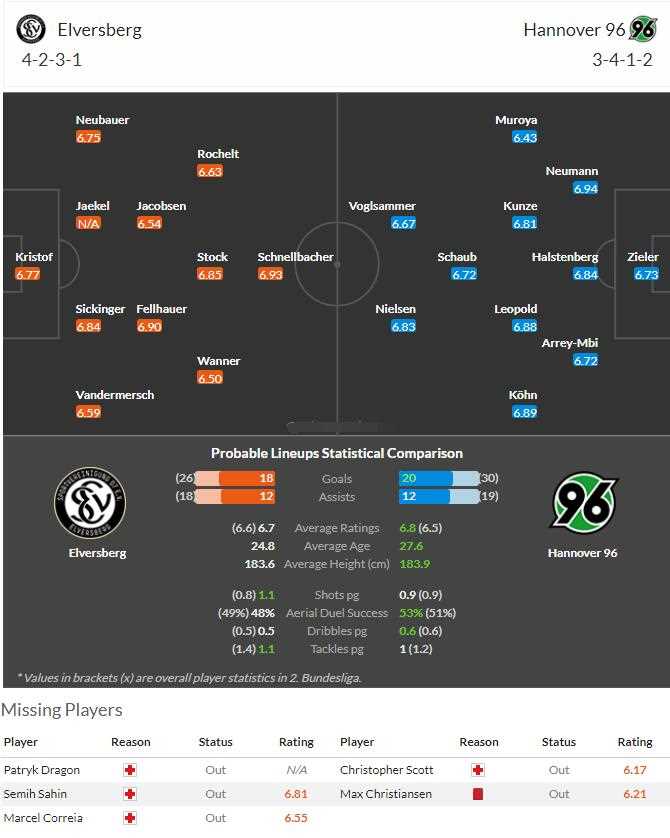 埃尔沃斯堡作为本赛季什么班,球队在赛季初阶段曾有着一段不俗的发挥,期间更是保持了连续7轮不败的稳定走势,但是在冬歇期前球队状态下滑明显,近三轮遭遇三连败的同时场均失3球,其中最近一轮联赛以2-3的比分不敌卡尔斯鲁厄,但在比赛中球队小将保罗万纳完成1球1助攻,这名拜仁青训打进了其加盟球队后的第二个进球,逐渐成为了球队中场主力本场有望继续首发。而在冬歇期的两场友谊赛中,埃尔沃斯堡取得1胜1平,总体备战表现不俗。