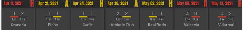 最近的胜利可以追溯到11轮对赫塔菲的主场比赛。上一场客场胜利也是对赫塔菲的,回到1月份,考虑到他们必须赢得这场比赛才能有机会摆脱保级,这是不好的,因为最后一轮马德里竞技正在等待。