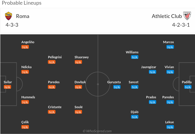 Market-value wise there is no difference in player material, the most expensive Roma player is Dovbyk, who is well-known to Bilbao as he played in Girona last season, with good success! Both teams have players worth of +300 million euros, and there are no huge absentees.