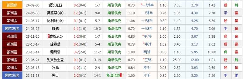 斯洛伐克兩次作客都開出-0.5跟-0.75