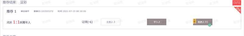週中的比賽我們是直接命中比分1:1的爆冷方向