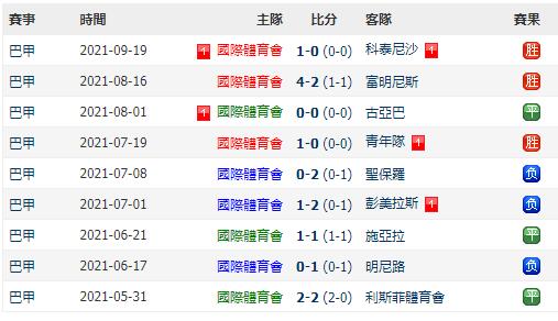 巴西國際主場3勝3平3負+打進10球