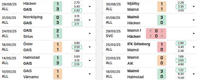 Just three days after this match, Malmö kicks off their Champions League qualification campaign with a two-legged tie against Georgian side Iberia 1999, starting in Tbilisi. Focus is undoubtedly already shifting toward that matchup. In-form GAIS will look to take full advantage and hand Malmö what would be their fourth league defeat of the season.