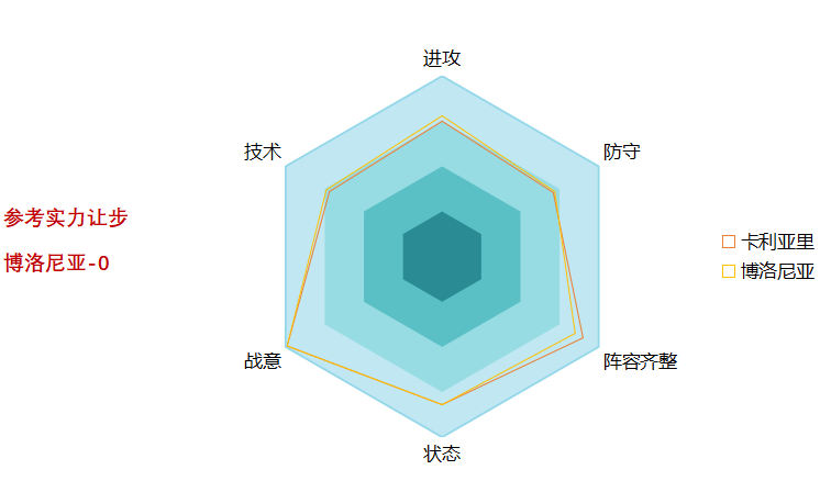 本场比赛参考实力让步是平手,与目前市场让步相符。需要注意的是,初始让步给了做客的博洛尼亚一个门槛,从本赛季两队的形势来看也是合理的,只是目前博洛尼亚受伤病影响更大,而且过去几个赛季并未在客场击败过卡利亚里,我认为博洛尼亚其实支撑不了市场给出的初始让步。虽然目前平手让步下博洛尼亚处于价格较低的一方,但是在降低让步门槛的背景下这个情况是合理的,只是从基本面来看,我不认为博洛尼亚本场有必胜把握,本场我更看好卡利亚里在主场拿分。