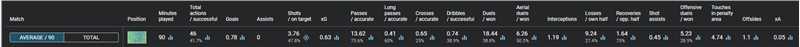 Leipzig is ranked 7 with 9 wins, 4 draws & 8 losses for 40 goals scored & 26 goals conceded.