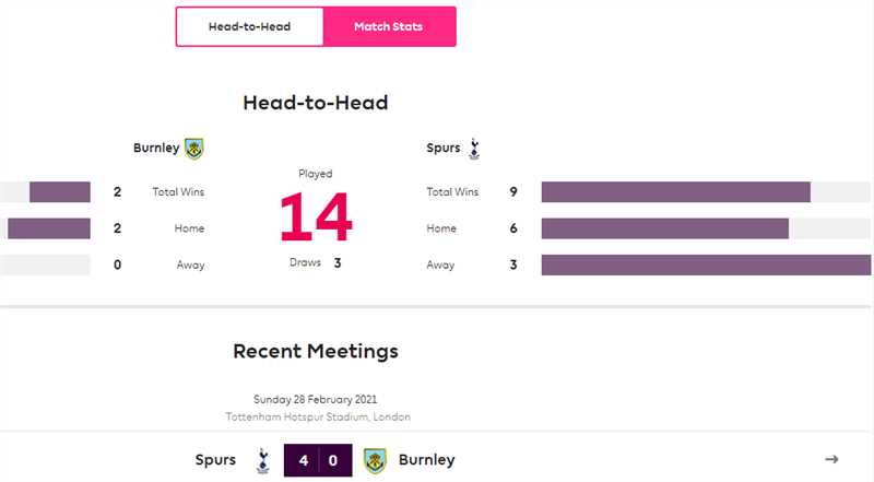 热刺在对阵伯恩利的14场英超比赛中,只有一场未能进球——那是在2015年4月踢成0-0平。与此同时,这14场比赛热刺共有8场不失一球。
