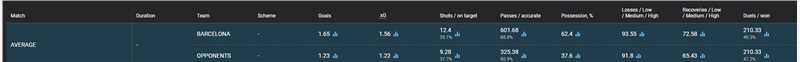 巴塞罗那以11胜9平4负,进42球失28球的成绩在西甲联赛中排名第四。